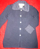 Outstanding Piece: A crocheted lace collar, cuffs and half-belt in back imbue this sweater coat with a Thirties' aesthetic. Tel: 859-846-5295 Email: info@bellabliss.com