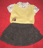 Outstanding Pieces: I love the way the chocolate silk tiered skirt updates the conservative sweater-vest and sweet blouse. Lynn Meyer Showroom Tel: 212-947-5522 E-mail: lmeyerinc@aol.com
