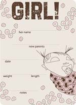 Outstanding Pieces: The subtle colors and delicate illustration on the boy's card announces the baby's arrival eloquently. Tel: 301.762.5677 E-mail: carrie@oh-baby-designs.com