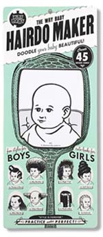 Outstanding Pieces: There are three styles of hangable notepads like the "Hairdo Maker" that features a baldheaded babe with illustrations of different dos to try on; the "Estrogen" pad that urges pregnant moms to write down important chores such as bathing before their hormones short circuits their memory; and another that tells dad "life as you know it is over"! Tel: 415-550-8880 E-mail: information@wrybaby.com