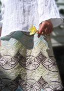 Embroidered skirt Watergarden is reminiscent of shimmering silk kimonos. The refined burnt orange, dusty lilac and chocolate hues are lifted straight from Japanese woodcuts. It's a stunning group.