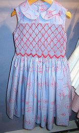 Outstanding piece: Employing a sportswear print in the sky and tomato combination and extending the smocking from the bodice to the waist, makes this dress a bit more sophisticated than the usual sweet, high-waisted style. Tel: 415-345-8900 E-mail: belezakids@yahoo.com