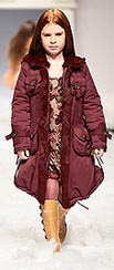 Moody and chic at I Pinco Pallino. Designers of the larger collections aimed to express the yin and yang of feminine with masculine; high-tech and earthy; and military styles spiked with lace. On the flip side, were American style boys' collections. It seems that boys' clothing for fall, is all about classic hoodies, sweaters and jeans. Or, an interpretation of motorcycle wear that is all sleek lines and heavy on black. Many of the photos below are hot off the Pitti Bimbo kittenwalks.