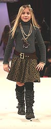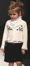 Have a heart baby at Amore. -Liberty prints. Most often seen in infant and toddler collections. The flowers break up the monotony of dark solids and tweeds. -Metallic threads in silver, gold and copper lend glamour when paired with rougher denim and wools. -Large, diamond shaped rhinestones on white knits and outerwear lend a glistening snowflake effect. -Leopard and cheetah designs found a spot in girls' sportswear separates as well as outerwear.