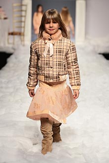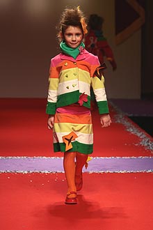 Pitti Bimbo Fall '07/Winter '08: Hitting the Runway - Part I In Florence, Pitti Immagine Bimbo (January 19-21, 2007) isn't a trade show, it's a cultural event. You sense the exhibition's importance in the neighborhoods surrounding the fair where shopkeepers and restaurateurs ask, "Are you attending Pitti?" with some reverence. Walking toward Pitti's vast grounds (read more about that in my blog of this season's event), you feel the excitement mounting as cabs, mini-vans and busses unload throngs of retailers and press. Pitti Bimbo means big business for the exhibitors. At this season's show 10,479 buyers were in attendance. That figure includes retailers from all over Europe, Russia, Japan and the U.S. Manufacturers with the biggest bucks host runway shows while others create displays that are more on-site art installations than booth designs. (Calling the spaces at Pitti "booths" minimizes their grandeur.) Add the stylish crowds and it's obvious that in Italy childrenswear is taken as seriously in the fashion industry as adult manufacturing. The enthusiasm reached fever pitch during the eight fashion shows. Each production was held in two buildings on the far side of the expansive grounds. Retailers and press with invitations, milled about outside of the rotundas waiting to gain entrance. Inside, the shows were as carefully orchestrated as anything seen under the tents during Fashion Week in New York. To give the audience the drama they expect, companies hire stage designers, DJs and event coordinators to pull together the presentations. The models are culled from upper-tier agencies. They sashay to the end of the runway with the grace of much older professionals then hit their poses with aplomb. On the runways were fantasy princesses and ballerinas, frat boys and motorcycle gangs, punks, punkettes and circus performers. Many of the collections worked similar themes and colorations; iconoclasts like Agatha Ruiz de la Prada stayed true to her signature bright palette and brought forth playful silhouettes. Here's a sample of the shows. Sorry, though. I can't e-mail waiters to pour champagne and serve hors d'oeuvres. Yes, that's the Italian way of giving guests a good time - that, a damn good show.
