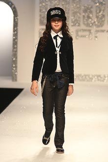 Brums' designers put their heart into this collection - literally. Models carried stuffed, felt hearts down the runway and the sweet motif was knit into the sweaters or sported on T-shirts. Quilted jackets, velvet trousers and real fur around coat collars lent a note of luxury to this sportswear line.