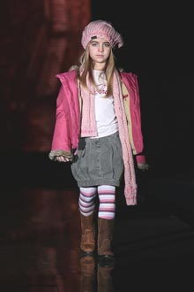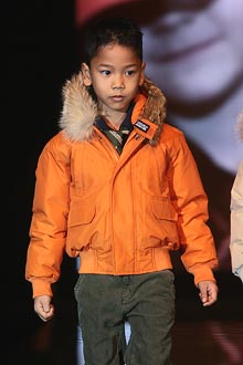 The Fall/Winter collection was divided into two categories: American Basic and Soft Military for boys; American Basic and Young Rural for girls. As the groups' titles imply, the garments gave a strong nod toward American classic looks. "Orange plus" and "geranium" added punches of color.