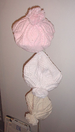 Product Line: Tams (s, m, l; white, pink, blue; $8)
