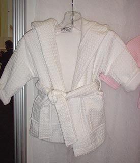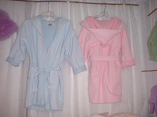 Product Line: Robes - terry-lined (white, pink, blue waffle weave; 0-12m/12 - 24m, $14; 2t/3t, 4t/4; $15; 5/6, 7/8, $16)