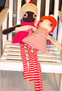 ESTHEX A collection of huggable, colorful and humorous dolls for kids and adults Designer: Esther Schuivens Ages: children through adult Wholesale: $9-$29 Standouts: 'Molly' and 'Marie' with their elongated striped legs; Sam the Duck; Lola Rabbit