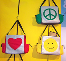 DANTE BEATRIX Stylish and functional utility bags, "The ultimate stroller accessory" Designer: Dante Pauwels Wholesale: $12-$145 Standouts: The new 'Flower Child' Collection featuring a peace sign, happy face, or heart; the durable and chic quilted nylon and leather utility bags