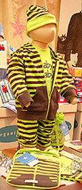 ELEGANT BABY Accessories, baby accessories, baby bedding, bath accessories, gift items Sizes: Layette, Infant Wholesale: $9-$17.50 Standouts: The just introduced "Chocolate Collection" which consists of a 3-pc. gift set: 100% cotton pants, t-shirt, hoodie; a zip front jacket; a matching bib and burp set, a blanket, a ceramic piggy bank