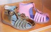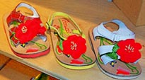 Bopy Chaussures Reasonably priced, fashionable, sporty, and well designed footwear Sizes: 1 - 8 1/2 Wholesale: $16- $31 Standouts: The supportive, high ankle strap buckled little boys' earth toned leather fisherman sandals (some with whale appliqués); the little girls' suede tri colored ankle strap shoes with Velcro closures, appliquéd with flowers, butterflies, pineapples.