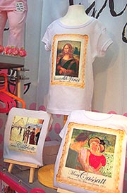 There certainly wasn't a shortage of creativity on view, which was exemplified by the creative ways in which the basic, humble T-shirt (long a favorite for the grown ups) has been reinvented, afforded star status, and offered for little ones of all ages, from newborns to tweens. It seems everywhere I looked, novel T-shirts stole the show. There were slogan and logo tees, vintage inspired tie dye ("to die for") and hip rock concert tees (very 'groovy'!), organic cotton tees, screen printed tees, bejeweled tees that were decorated to the max, and onesie tees. There were even tees that were emblazoned with eerily authentic likenesses of famous, iconic paintings and artwork. It was like taking a stroll down the aisles of the Metropolitan Museum of Art. The glorification of the T-shirt personifies the notion that "everything old is new again", something which is always at the heart of fashion (and I'm referring to fashion for grown ups as well). Yes, everything old is new again, as world class designers and manufactures look back in order to go forward. Because they know that certain things cannot be improved upon.
