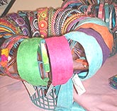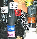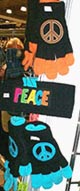 Groove Camp's peace sign hats, scarves and gloves. My 'word': Popular sayings, slogans, phrases, and inspirational messages were printed, engraved, beaded, stamped, and embroidered on every manner of accessory.