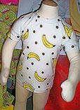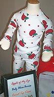 NEW JAMMIES 100% certified organic cotton onesies, rompers, pajama sets, tees, hats, and blankets printed with bold and colorful fruits and vegetables (in accordance with safety regulations) Designer: Nicole Weinberger Sizes: Newborn - 6 years Wholesale: $10- $40 Standouts: The Snuggly PJs, Easy Fit Onesies, Footsies Rompers, Playtime Rompers, and PJ Tees in fruit and vegetable prints with names like 'Apple of My Eye', 'Baby Blues-berries', 'Bananas in My Belly', 'Carrot Top Kisses', 'Pretty Peas Please'.