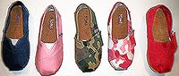 FYI: Blake drew inspiration for the collection from traditional Argentinean workers' shoes. Within 4 hours of wearing, Tiny Toms are guaranteed to shrink or mold to your foot. This socially responsible and compassionate designer and his company make sure that for every pair of shoes purchased, a pair will be donated to a child in need on your behalf. The company will be featured on Oprah in October. An offshoot of Toms (their adult line), this is their launch and their very first Children's Club. Tel: 310-566-3174 E-Mail: info@tomsshoes.com