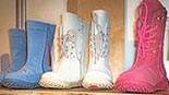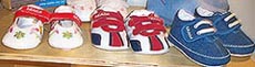 SEADA INTERNATIONAL A collection of shoes for little boys and girls which emphasizes comfort, safety, and style Designer: James Fu Sizes: Infant, Toddler, Girls 4 - 6X, Girls 7 - 14, Boys 8 - 20 Wholesale: $3 - $18 Standouts: The graphic multi colored leather athletic shoes and Mary Janes with Velcro strap closure; the powder blue, pink, and ivory PV lace up, zip up boots with molded rubber soles.