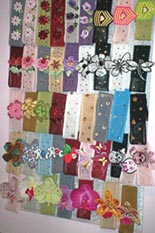 ALIVIAN High quality hair accessories for little girls Designer: Natalia Berg Nielsen Sizes: Infant, Toddler, Girls 4 - 6X, Girls 4 - 6X Wholesale: $10 - $15 Standouts: The new mesh beads; The 'Back-to-School' Collection which includes emblems, flowers (newly re-colored for fall in earth tones of green and brown), the graphic black and white grouping.