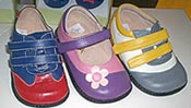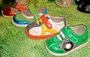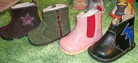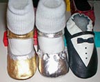 ELK SHOES Unique soft sole leather shoes for baby and toddler Designer: Joan Wang Wholesale: $12 - $17 Sizes: Infant, Toddler Standouts: The 'tuxedo' shoe; the silver Mary Jane (metallics are new); the brown and beige two tone t-strap; the guitar appliqué (which is new).