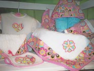 TICKLE TOES A charming collection of fine gifts for babies and children Designer: Pamela Molloy Wholesale: $5.50- $24 Sizes: Infant, Toddler Standouts: The blanket, burp cloth, hooded towel, and wash cloth sets in 'Melody Floral', 'All-Star', and madras plaid (a best seller).