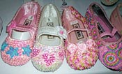 CHINA DOLL SHOES "Beautiful, sparkly, and fun" shoes for all ages Designer: Treesa Robinson Sizes: Infant to Adult Wholesale: $14 - $20 Standouts: Their Mary Janes, for which they are known: especially the green and pink "classic sequined" version (which is their best seller), and those printed in sweet retro prints and patterns.