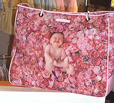 KUSHIES BABY An innovative collection comprised of high quality baby products and accessories. Size: Preemie, Layette, Infant, Toddler Standouts: The distinctive Anne Geddes diaper bags ($120 retail) and totes; the printed and patterned bibs ($4.99 retail)