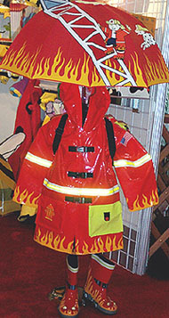KIDORABLE Accessories, baby accessories, bath accessories, bedroom accessories, outerwear, rainwear, scarves, school accessories, shoes, winter accessories Designer: Liping Yang Sizes: Infant, toddler, girls and boys, 2T 6x Wholesale: $4.75 - $15.95 Standouts: The coordinating rainwear for boys and girls- raincoats, boots, hats, and umbrellas (like the Red Firemen and the Pink Lotus).
