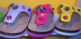 L'AMOUR A division of Im-Link Corp., they offer a large assortment of footwear for boys and girls that ranges from the classic and basic to the more ornamental and whimsical. Designer: Cindy Lau Size: 2 - 6 Wholesale: $15- $17 Standouts: The brightly hued patent leather sandals graphically embellished with large stones and silver beads; and the pastel flower trimmed versions in nu buck.