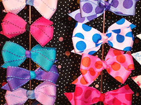 ANDREA'S BEAU Upscale, unusual, hand made and beautifully handcrafted accessories for girls. Designer: Andrea Chafetz Wholesale: $3 - $9 Age: Toddler, girls 4 - 6x, girls 7 - 14 Standouts: The 'Beau Ties' which can be a hair accessory or a belt.