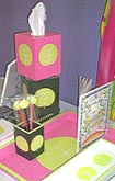 BERMUDA BAY GRAPE COLLECTION Children's books, beach, and home accessories with a decidedly colorful 'island' vibe Designer: Dana Cooper Wholesale: $10 - $60 Standouts: The eye catching, vibrantly hued mini and full sarongs and blankets, wooden trays, and Kleenex boxes all of which are covered with the ocean grape leaf (which is indigenous to Bermuda)