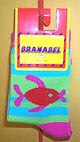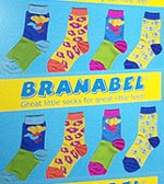 BRANABEL Colorful, whimsical socks Designer: Jennifer Clark Sizes: Small (1-4), Medium (6-12) Wholesale: $2.50 Standouts: The single chick and multi chick socks; the fish anklets; the multi striped socks