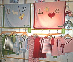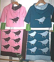 AMBER HAGEN High quality hand knit cashmere, and cotton and cashmere separates, layette, coordinating blankets Designer: Amber Hagen Wholesale: $14 - $96 Sizes: Layette, Infant, Toddler Standouts: The brand new 100% cashmere layette line which comes with matching blankets, and striped kimono tops and drawstring pants which also come with coordinating blankets; the 80% cotton/20% cashmere zip-up reversible hoodies printed with birds and butterflies (which are new prints this season).