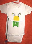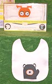 BIBS & MATCH Baby accessories and gift items with an emphasis on safety and practicality Designer: Molly Chen Wholesale: $2 - $15 Sizes: 3M - 12M Standouts: The onesies with snap-on bibs; 3-piece boxed sets which include two bibs and one onesie (the gray monster and orange monster is their best seller); the pacifier holder.