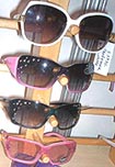 A.J. MORGAN Distinctive eyewear for all ages Wholesale: 50 cents - $3 Sizes: Infant - 12 Standouts: Oversized celebrity 'glamour girl' shades (very 'Nicole Ritchie'); small metal vintage inspired frames; colorful plastic frames decorated with rhinestones in assorted, whimsical patterns (flowers, cherries, bumble bees, multi stripes); the clear plastic heart shaped eyeglass case decorated with polka dots which can be used as a handbag.