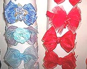 KIDS KAPERS Hand made hair accessories Designer: Sandra Ostach Wholesale: $5.75 - $6.50 Sizes: Preemie, newborn, layette, infant, toddler, girls 4 - 6X, girls 7 - 14, Preteen Standouts: The stretch and soft headbands decorated with organza flowers (many are embellished with crystal centers); the large grosgrain and organza bow barrettes which are available in every imaginable shade.