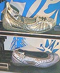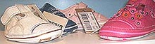 DIESEL KIDS Sporty and stylish footwear for the young set Wholesale: $35 and up Sizes: Infant, toddler, girls 4 - 6X, girls 7 - 16, boys 4 - 7, boys 8 - 20 Standouts: The silver metallic Moon Boots and tri colored sneakers with Velcro closure; the winter white pony skin and leather T-straps; the rubber sole, ribbon tied silver and purple suede high tops