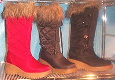 STEVE MADDEN KIDS, STEVIES Fashion forward shoe divisions of Steve Madden Sizes: Girls, 5-11 Wholesale: $25- $50 Standouts: Stevies' red and brown quilted nylon lined tall boot lined in faux fur with molded rubber wedge sole.