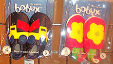 BOBUX Innovative and ecologically friendly footwear, baby accessories, gift Items Size: Layette, Infant, Toddler, Girls 4-6X, Boys 4-7 Wholesale: Approximately $13 Standouts: The original soft-soled baby shoes that are guaranteed to stay on and are available in more than 70 colorful and sweet designs (animals, sailboats, ballet slippers, etc.) that "face the baby".