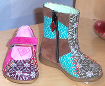 OILILY A collection of signature playful, colorful, whimsical shoes that coordinate with the clothing line Size: Infant, toddler, children, pre teen, juniors, women Wholesale: $50 -$100 Standouts: The 'Mother like daughter' suede booties; the patchwork leather low boot and Mary Jane; the sequined green and brown cowboy boot which matches clothing in the collection.
