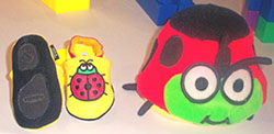PEDOODLES Whimsical and colorful baby accessories, shoes, gift items which are true to their motto, "Show everyone your character" Designers: Leesa Valentino, James Pootan Sizes: Infant, toddler, girls 4-6X, boys 4-7 Wholesale: $10- $22 Standouts: The comfortable shoes that sport rubber soles that go all the way through for flexibility, some of which have matching cotton lined fleece hats (like the bright red Lady Bug).