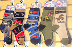 TIC TAC TOE / CRICKET HOSIERY An extensive collection of boys' and girls' socks, Christening hosiery, girls' tights, infant hosiery and socks, school uniform hosiery Designer: Janine Brown Sizes: Infant, toddler, girls 4-6X, girls 4-7, boys 8-20 Wholesale: Boys' and girls' pattern socks $27 a dozen; pattern tights range from $54 per dozen to $72 per dozen. Standouts: The large selection of whimsically patterned socks for little boys - that include trucks, airplanes, fire hydrants, horses, tractors (which is an often neglected part of the market).