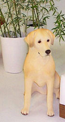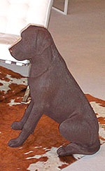 Artwork on a backpack from Dolca. Just a note, I also do not care for the word 'trend' or the concept. After covering fashion for as long as I have, one comes to believe that certain things always look good, are always welcome and relevant, and NEVER go out of style. But while I may not like to use the word 'trend', that doesn't mean there weren't overall themes that kept recurring in the three days I covered The Children's Club. In addition to the ubiquitous peace, love, and happiness signs; camouflage prints; flora and fauna; hand knits and crochets; there were animals and creatures in every shape, size, and incarnation; plenty of seersucker and plaids; and bows, bows, and more bows. Personalization in jewelry (and monograms and messages on woven items) individualizes, adding a 'custom made' feeling. One final observation though the Children's Club will return to the Jacob Javits Center in October, I must admit I quite liked the relaxed quality, and intimacy of Pier 94. It was very 'user friendly': plenty of light, airy, wide open spaces and enough places to sit on a big comfy couch or chair in order to regroup, get organized, make phone calls, use a laptop, drink coffee, or have some lunch. (By the way, the catered breakfasts and lunches were especially good this time). The easy vibe and ambiance was very much in sync with the end of summer and the recent heat wave we've been suffering through. Speaking of which (and speaking of 'signs' of the times), the lifelike cast iron dog sculptures which were strewn around, decorating the floors and accessorizing the sitting areas, served as a reminder that we are in fact ensconced in the 'Dog Days of August'.