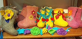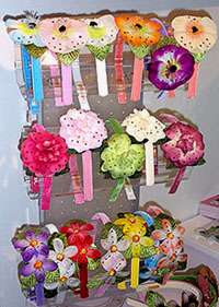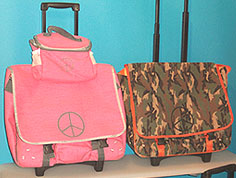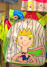 Peace sign and camouflage bags from GoGo Gear. At New York's Pier 94 (where the Children's Club show moved - just this time around - from the much more sprawling Jacob Javits Center), it seemed as if there were a delightful backlash against trendy trends and a renewed embrace of tried and true, old fashioned, traditional, timeless symbols by both established lines and new ones - those that always look great and are always in style. In evidence was a desire to go back to one's roots, back to basics, rediscover the simple pleasures and joys of arts and crafts and handiwork, and an honest to goodness desire to honor and preserve the environment. In general, the accessory lines that stood out were soothing, comforting, wholesome, healthy, and visual. They not only looked good, but felt good. Versatility and practicality, as always, was another obvious 'plus' and most importantly, the best items actually DID something good; the wonderful combination of form and function is hard to beat and perhaps more important than ever, given all our busy multi tasking lives. As I strolled the aisles looking for excitement and inspiration, the booths that attracted me and caught my eye were those that were irresistible because they instantly put a smile on my face and made me happy. And given the world situation, that's no small feat. I think it's quite natural that a lot of us adults would seek out scarves, bags, shoes, socks, layette, room furnishings, bedding, toys, etc. for the little ones, with an irresistible 'feel good', textural, tactile quality; vintage and retro inspired items that evoke a kinder, simpler, gentler time, are comforting, upbeat, whimsical, happy, optimistic, and innocent. Yes indeed everything old IS new again. But though retro and vintage may tie everything together, it must be executed in a thoroughly modern manner and modernity is the key. And while I've never been one who has particularly liked clothing or accessories that seem destined to make our little ones look as if they've grown up too fast (let kids be kids for as long as they can for heaven's sake!), this time more than ever, I was immediately drawn to the sweet, upbeat, happy, joyous, fresh, innocent, and childlike side of things. And I've never particularly liked things (especially geared for the very young), that are ostentatious, flashy, and over the top. Coincidentally, the ubiquitous and overdone use of 'bling' and sparkle is showing signs of abating even in the world of grown-up women's wear (and men's wear) and was the cover story of Women's Wear Daily recently ("Less Buzz About Bling: Jewelers, Hip-Hop Stars Tone down the Sparkle"). According to Sophia Chabbott (the story's writer), "Bling appears to be losing its luster." The phenomenon of over-the-top jewelry and watches is becoming passé and "the trendsetting hip-hop crowd is less focused on ostentation and comparing carats, turning instead to more refined pieces like fine Swiss watches and quality diamond jewelry."